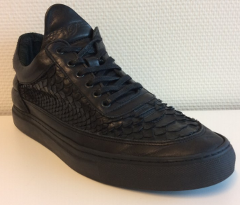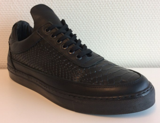 4.18. De voorzieningenrechter verwerpt het betoog van De Schoenenfabriek dat de ‘Sneaker Snake’ sneakers bij de geïnformeerde gebruiker een andere algemene indruk wekken dat de ‘Low Top Python’ snekaers. De twee modellen vertonen naar voorlopig oordeel te veel gelijkenis, in het bijzonder door de combinatie van de navolgende elementen. De ‘Sneaker Snake’ sneakers zijn net als de ‘Low Top Python’ sneakers een low top model sneakers, waarbij aan de buitenzijde een bovenwerk van slangenleerpatroon is afgezet tegen de lower strap en upper strap van een glad op leer gelijkend materiaal, die zijn voorzien van een rubberen zogenoemde ‘Margom’ zool met een geribbelde band om de schoenpunt en een golvend patroon aan de onderzijde. Net als bij de ‘Low Top Python’ sneakers is bij de ‘Sneaker Snake’ sneakers langs de gehele rand van de aanhechting van de zool aan de lower strap en het hielstuk grof enkel stiksel zichtbaar, heeft de lower strap nagenoeg dezelfde hoogte als de onderste laag van het hielstuk, eindigt de lower strap net iets onder de bovenkant van de onderste laag van het in drie vlakken verdeelde, taps naar boven toelopende hielstuk en is de bovenrand van de lower strap voorzien van fijn dubbel stiksel. Het hielstuk is met fijn dubbel stiksel bevestigd op het bovenwerk, zodanig dat het over de lower strap heen loopt vanaf de bovenkant van het hielstuk tot aan de zool, de kraag is gevuld en is van een glad op leer gelijkend materiaal, de upper strap is over de kraag en het bovenwerk met slangenleerpatroon gestikt met fijn enkel stiksel langs alle randen van de upper strap en onderaan de upper strap in de richting van de schoenpunt is ook een fijn enkel stiksel midden over de upper strap gestikt. Tot slot hebben de ‘Sneaker Snake’ sneakers net als de ‘Low Top Python’ sneakers zes in de kleur van de schoen afgewerkte ogen aan weerszijden in de upper strap en is de lip van de schoen verlengd. Zie in vergelijking met de ‘Low Top Python’ sneakers de hierna door Filling Pieces overgelegde foto’s van de ‘Sneaker Snake’ sneakers.