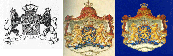 Het wapen, dat door het Koninkrijk der Nederlanden, zowel als door Ons en Onze opvolgers, Koningen der Nederlanden, zal worden gevoerd, is: