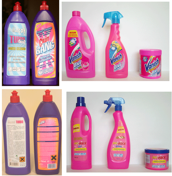 Gestelde merk-, model- en auteursrechtsinbreuk op flessen/verpakkingen schoonmaakmiddelen. Vorderingen van rechthebbende afgewezen. Reckitt brengt de vlekkenverwijderaars “Vanish” en “Cillit Bang” op de markt en heeft met betrekking tot die producten meerdere merken en modellen gedeponeerd. Reckitt meent dat Action inbreuk op haar merk-, model- en auteursrechten maakt door de producten “Oxi Quick” en “Mascot Turbo” op de markt te brengen. Ook maakt Action zich schuldig aan slaafse nabootsing, aldus Reckitt. In eerste instantie heeft de voorzieningenrechter van de rechtbank Den Haag de vorderingen afgewezen (IEF 389). (Klik op afbeelding voor vergroting).