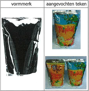 De vorm van de stazakjes van gedaagden wordt door de Brusselse rechter – dus ongeacht de specifieke opdruk – identiek beoordeeld en daarmee inbreukmakend ex artikel 2.20 lid 1a BVIE. Verwarringsgevaar hoeft dus niet te worden aangetoond. Dat komt in eerste instantie wat vreemd over, maar lijkt me toch juist te zijn. Het gaat bij vormmerken immers om de vorm van een product of de verpakking, ongeacht of daar andere (onderscheidende) kenmerken aan zijn toegevoegd. En juist die vorm is identiek. Een andere benadering zou (kunnen) betekenen dat wanneer een gedaagde partij eigen (onderscheidende) elementen, zoals een woordmerk, op de verpakking plaatst, er geen sprake meer zou zijn van inbreuk omdat de consument dan een duidelijk onderscheid kan maken tussen de verpakkingen. Een onbevredigend resultaat (dat – ten onrechte; zie ook de noot van Wouter Pors in IER 2015/46) wel volgt uit de beoordeling door de Amsterdamse rechtbank over de slaafse nabootsingsvordering van Capri Sun).