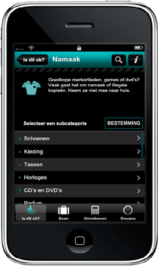 De Douane heeft een app (een applicatie voor mobiele telefoons) ontwikkeld, bedoeld voor reiziger. De app heet 'Is dit OK?'. Deze app laat zien wat u wel en niet van vakantie mee naar huis mag nemen.