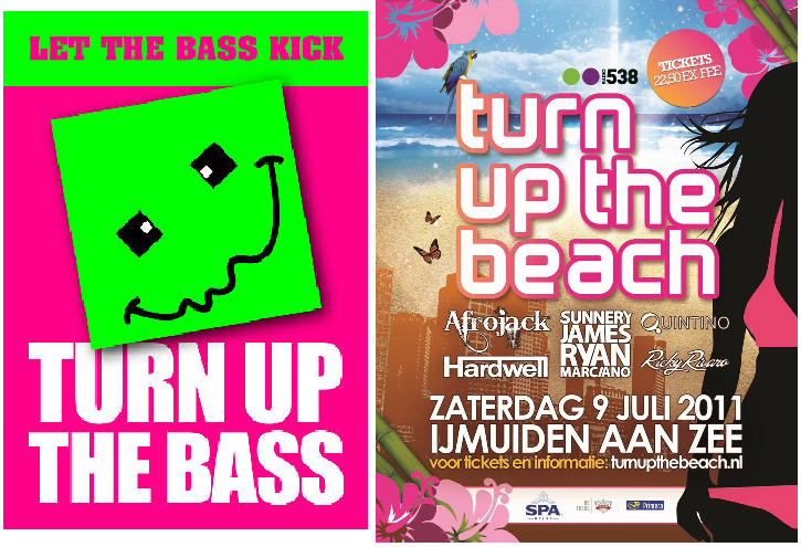 4.6.  Evenmin kan voorshands worden geoordeeld dat TURN UP THE BASS door inburgering onderscheidend vermogen heeft verkregen en op die grond de functie van een merk kan vervullen. Weliswaar is niet onaannemelijk dat (de rechtsvoorganger van) CNR in de periode 1989-1993 veelvuldig en consequent gebruik heeft gemaakt van de naam TURN UP THE BASS voor verzamel-cd’s en evenementen, maar Radio 538 heeft aan de hand van haar producties voldoende aannemelijk gemaakt dat TURN UP THE BASS al ongeveer twintig jaar door zeer veel personen en bedrijven wordt gebruikt in titels van cd’s en nummers of in het kader van feesten en evenementen. Zo heeft Radio 538 als productie 2 een groot aantal twitterberichten in het geding gebracht waaruit blijkt dat TURN UP THE BASS als verwijzing wordt gebruikt naar dancemuziek in het algemeen en niet als herkomstaanduiding voor de waren en diensten van eisers. Als productie 3 heeft Radio 538 afbeeldingen van een groot aantal cd’s in het geding gebracht die gebruik maken van de woorden TURN UP THE BASS in de titel. Als productie 4 heeft zij afbeeldingen van een groot aantal cd’s in het geding gebracht die gebruik maken van de woorden TURN UP THE …. in de titel (bijvoorbeeld TURN UP THE REGGAE, TURN UP THE MUSIC, TURN UP THE VOLUME). Als productie 5, 6 en 7 heeft Radio 538 tal van voorbeelden en flyers in het geding gebracht van evenementen met de naam TURN UP THE BASS of daarop gelijkende namen zoals RE-TURN UP THE BASS, TURN UP THE BASS TRIBUTE of TURN UP THE BASEMENT die zijn of worden georganiseerd in de periode juli 2002 tot en met juli 2011. Onder deze voorbeelden bevindt zich een evenement dat op 22 augustus 2008 is georganiseerd onder de naam TURN UP THE BEACH. Geen van deze evenementen is georganiseerd door eisers.