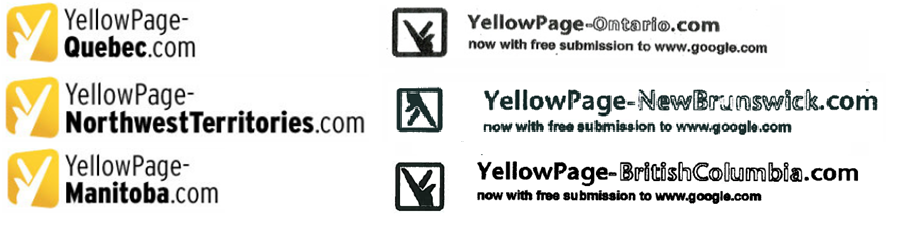 Canadese Yellow Pages bezit merkenrecht. De Nederlands, Britse en Canadese websites gereicht op Canada die zakelijke telefoongidsen aanbieden worden in combinatie met de woorden 'yellow pages' en het beeldmerk 'walking fingers' aangeboden.
