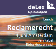 De Balie, Amsterdam, donderdag 23 april 2015, 12.00 - 15.15 uur. Dé jaarlijkse lunchbijeenkomst over het reclamerecht. Jan Kabel en Ebba Hoogenraad bespreken belangrijke en actuele jurisprudentie.